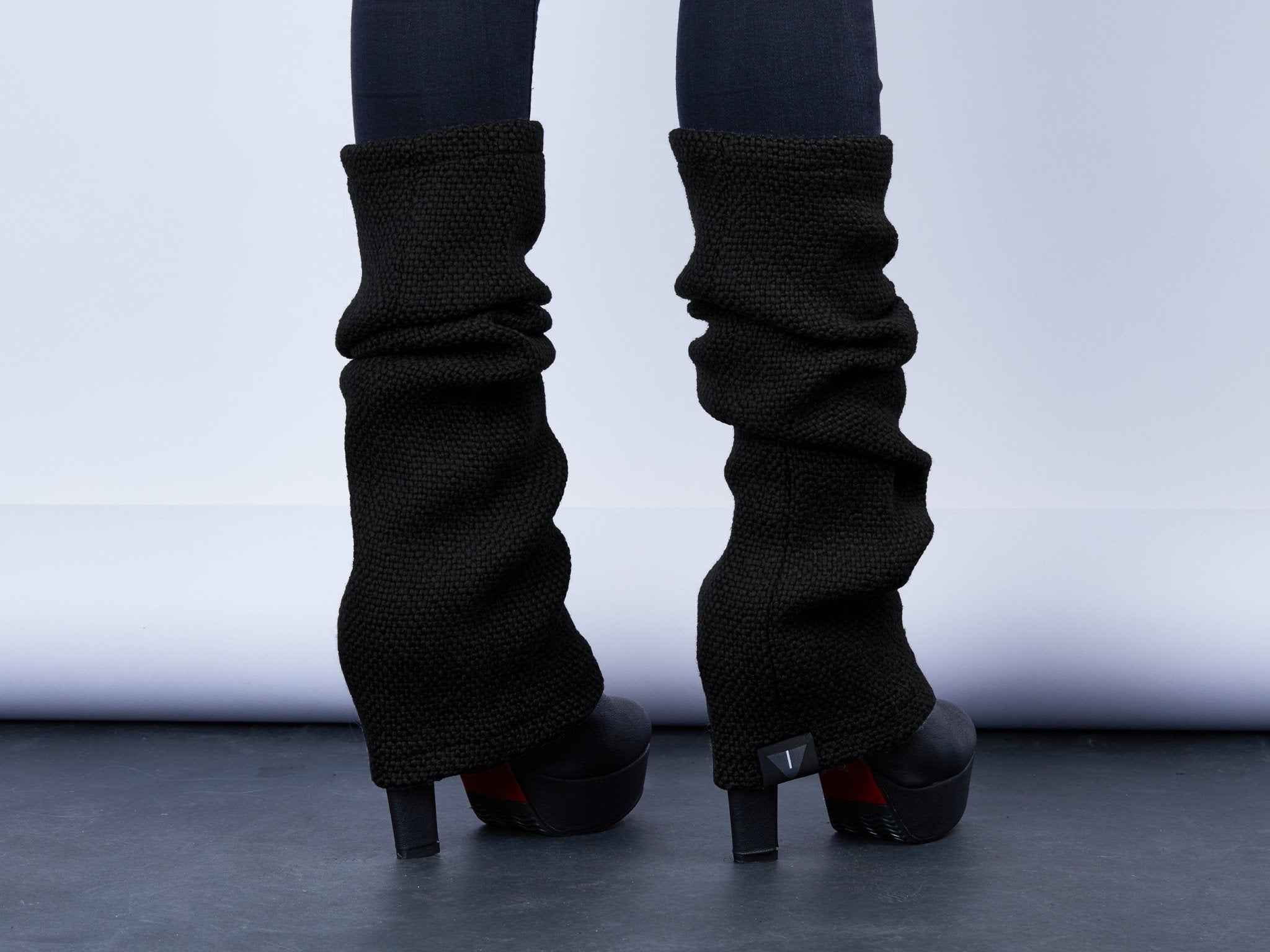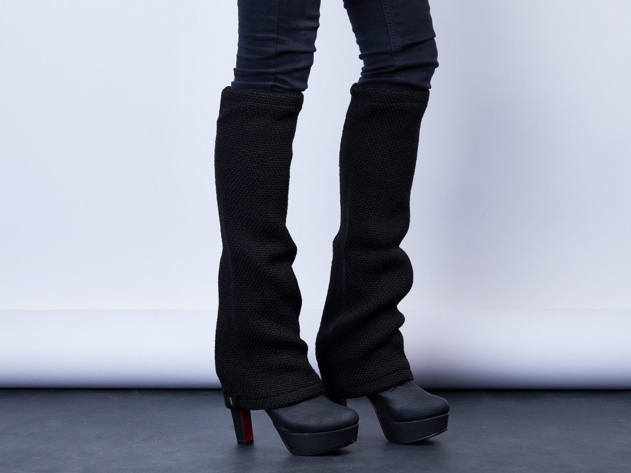 Black chunky boot socks are a versatile accessory. You can use it for pilates, or wear it during winter. These legwarmers are made of wool blend. You can wear it right up to the knee or scrunch it further down the leg.