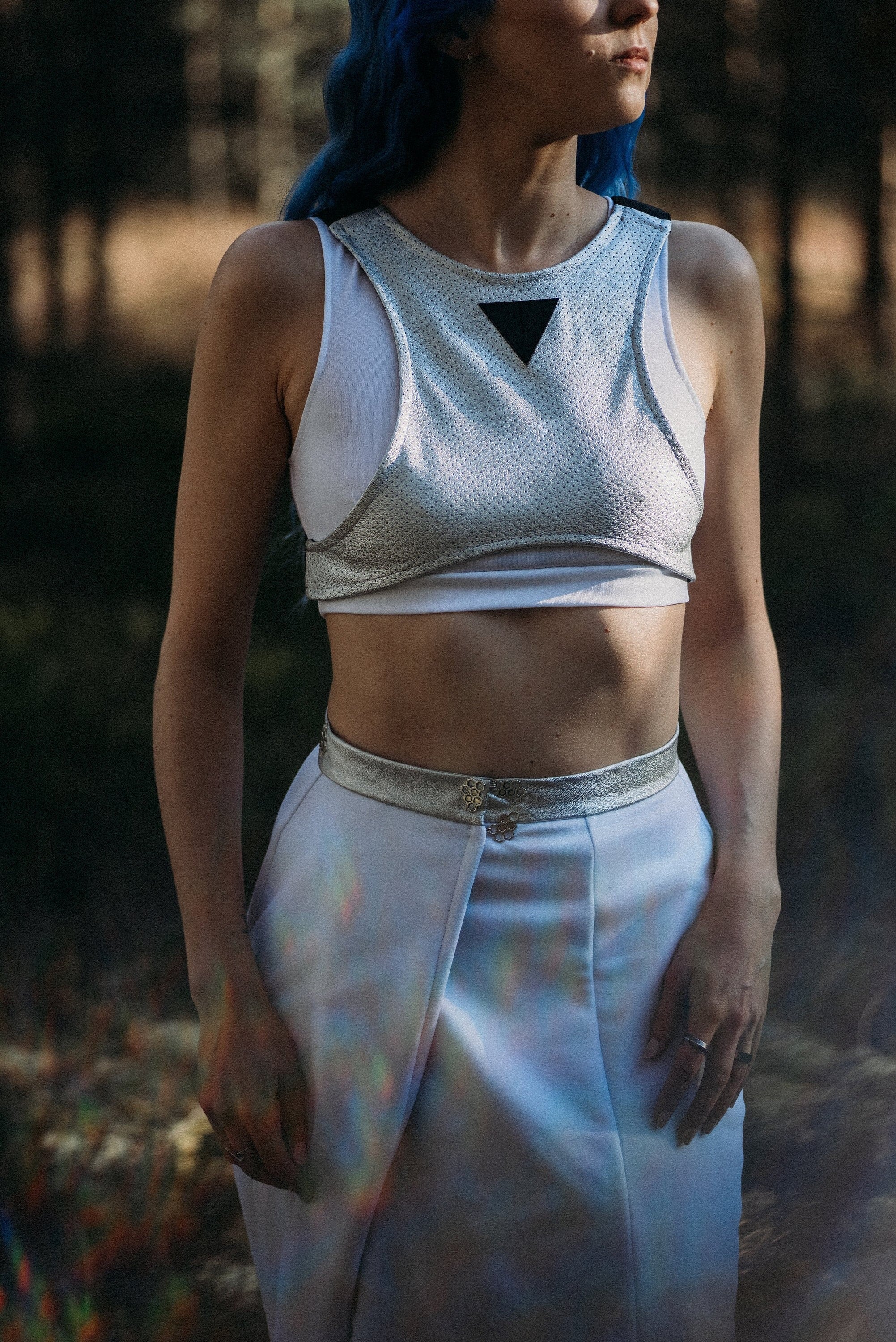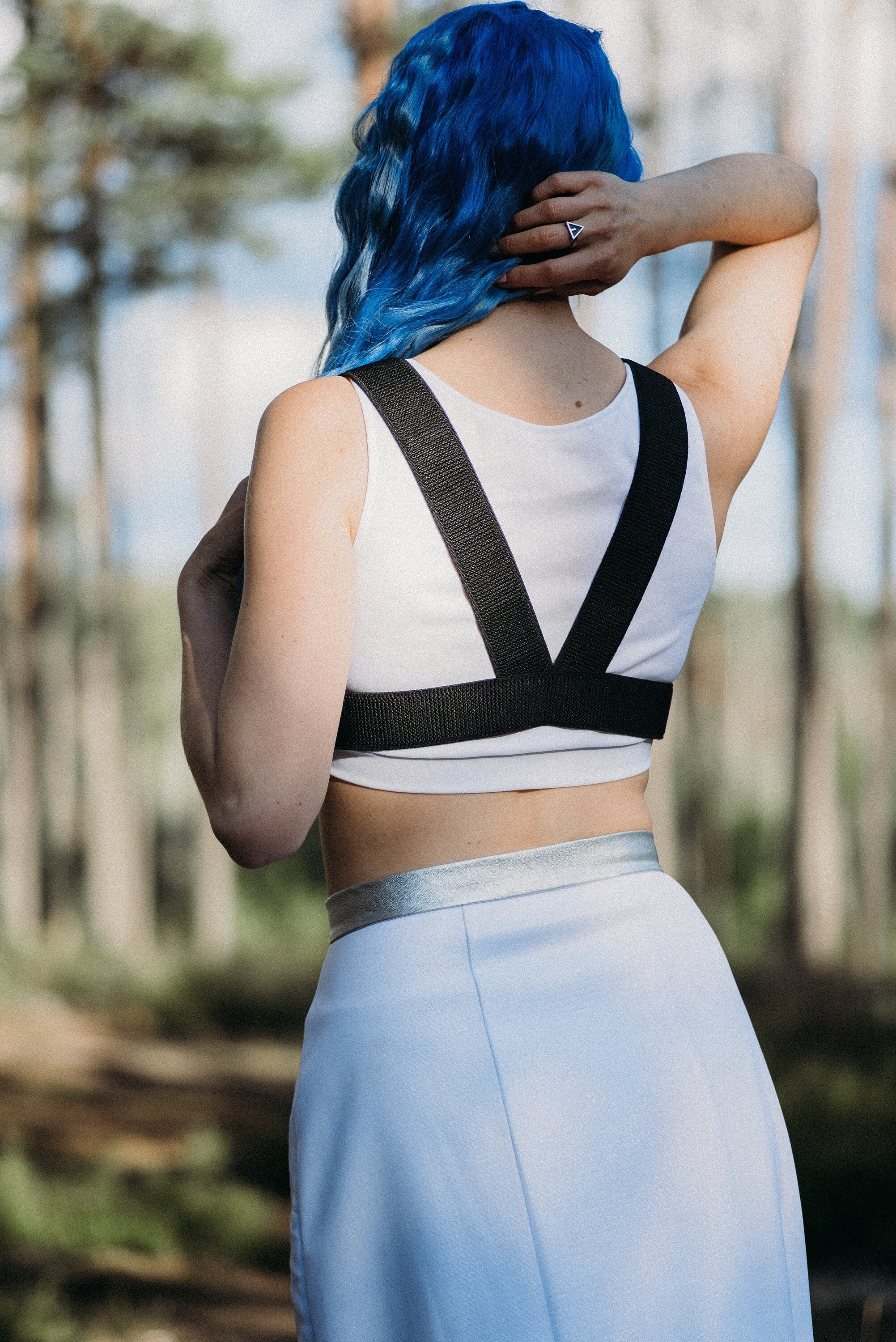 Silver leather chest plate, bust harness made of faux leather that holds with the elastics on the back. It's made of semi-thick faux leather. The edges are finished with bias tape that is neatly hemmed. You can use it for Cosplay, LARP, Halloween, Theatrical Play, Fantasy, Historical Reenactments or just wear it on a daily basis with different basic shirts or dresses underneath. Could be worn on a bare body as well. It can be reversed and worn with a leather part on the back as well.