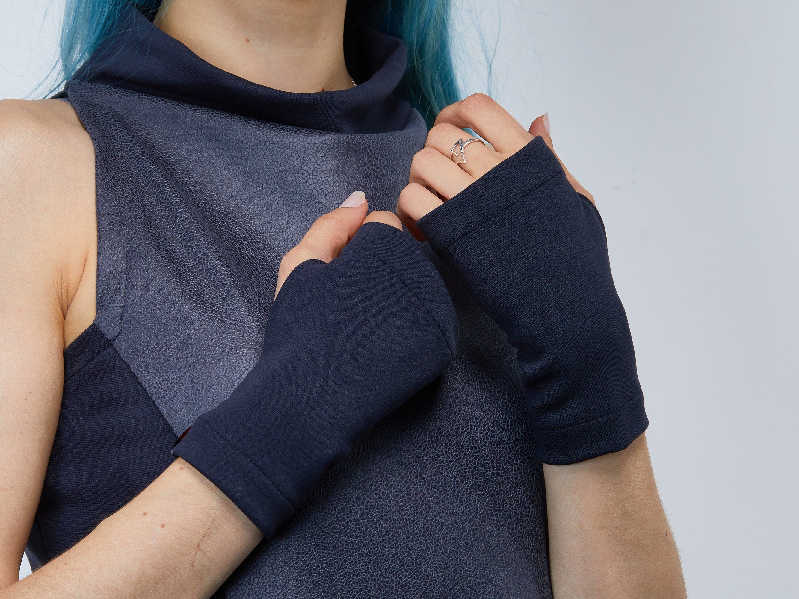 Gray arm warmers made of soft viscose jersey with a little elastane, that help the fabric to keep its shape. Viscose has similar properties to cotton, but is a little softer.