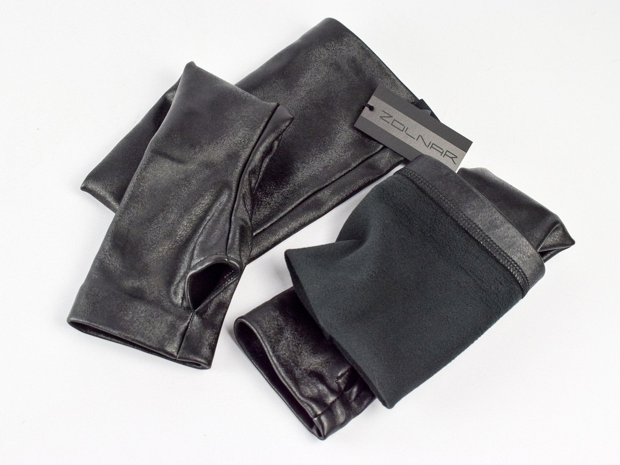 Long fleece fingerless gloves are made from stretchy coated fleece fabric.