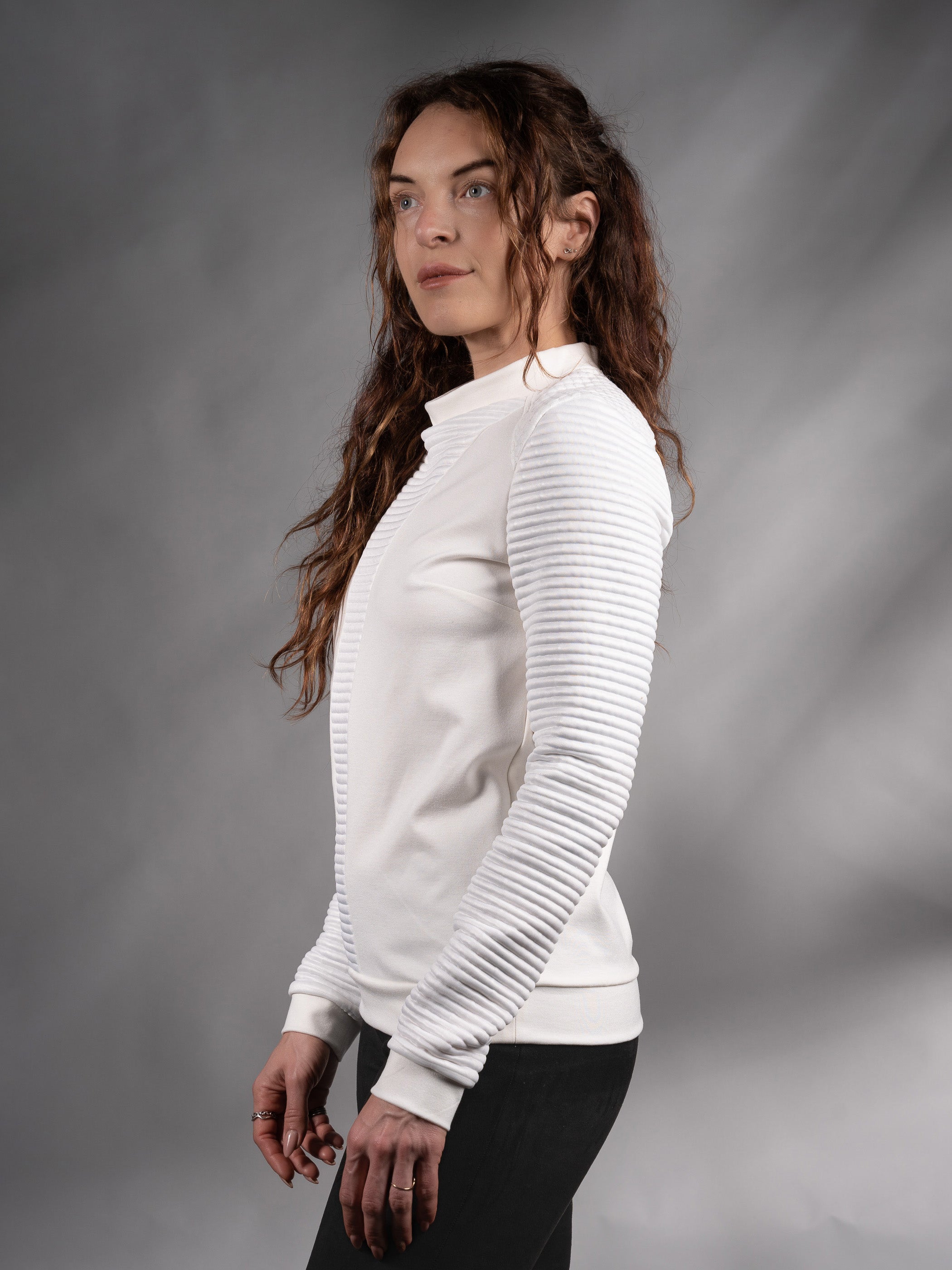 The cyberpunk women's sweater with regular sleeves and a halter neck.